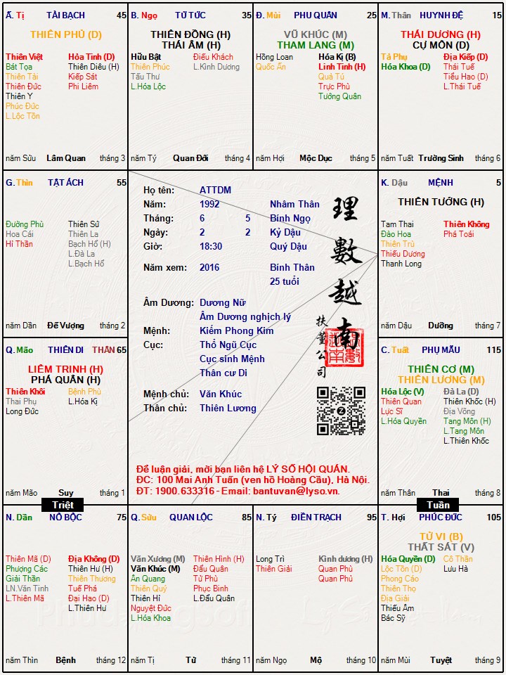 Lá số tử vi : ATTDM