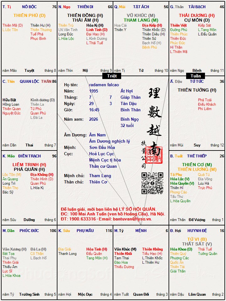Các luận giải : Lá số tử vi - radamen falcao
