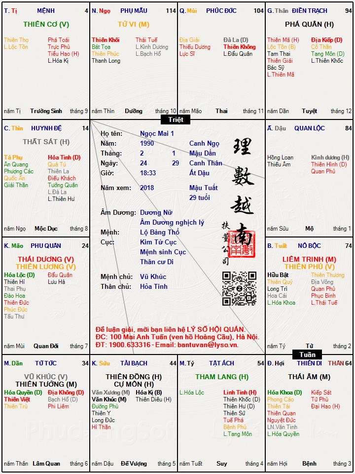 Các luận giải : Lá số tử vi - Ngọc Mai 1