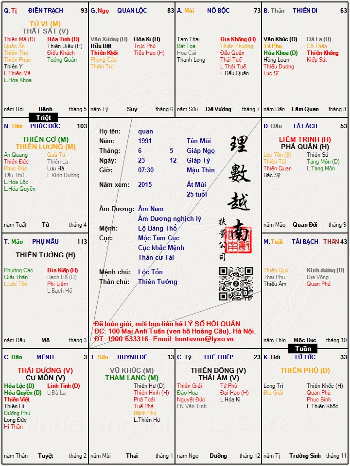 Lá số tử vi : quan