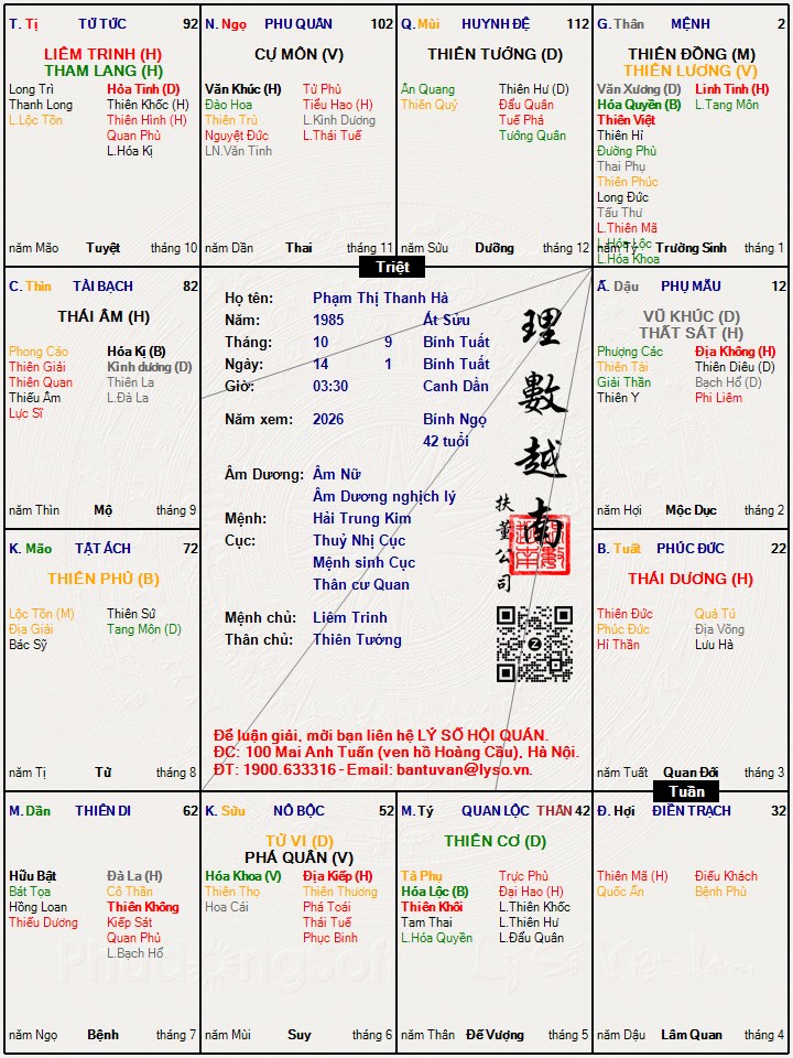 Các luận giải : Lá số tử vi - Phạm Thị Thanh Hà