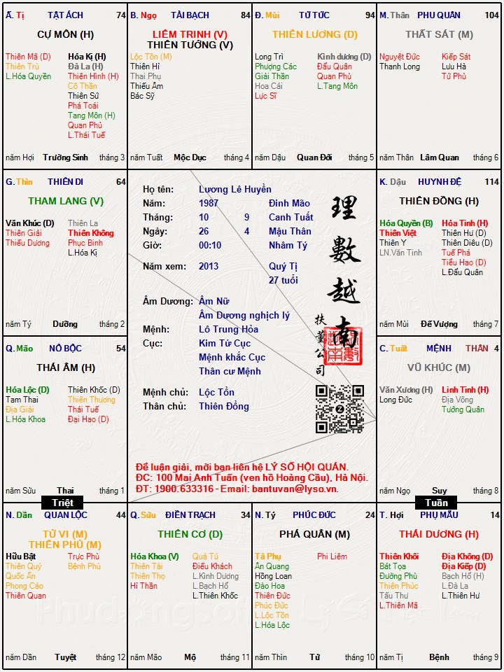 Các luận giải : Lá số tử vi - Lương Lê Huyền