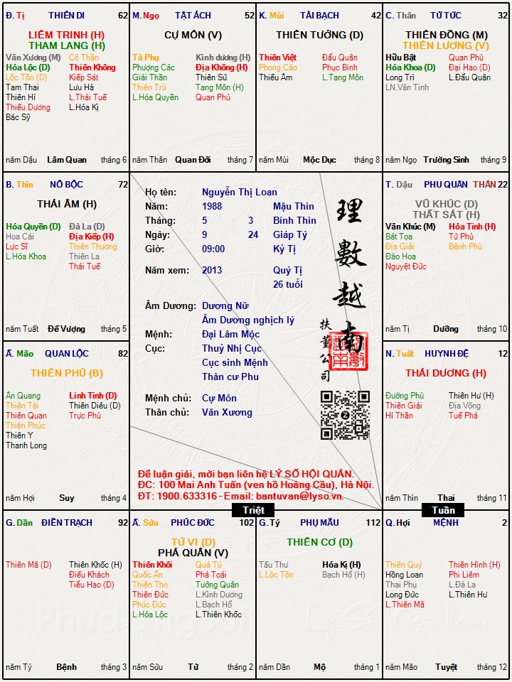 Các luận giải : Lá số tử vi - Nguyễn Thị Loan