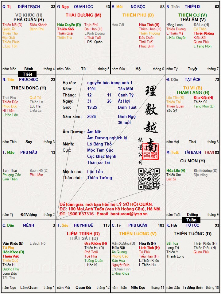 Các luận giải : Lá số tử vi - nguyễn bảo trang anh 1