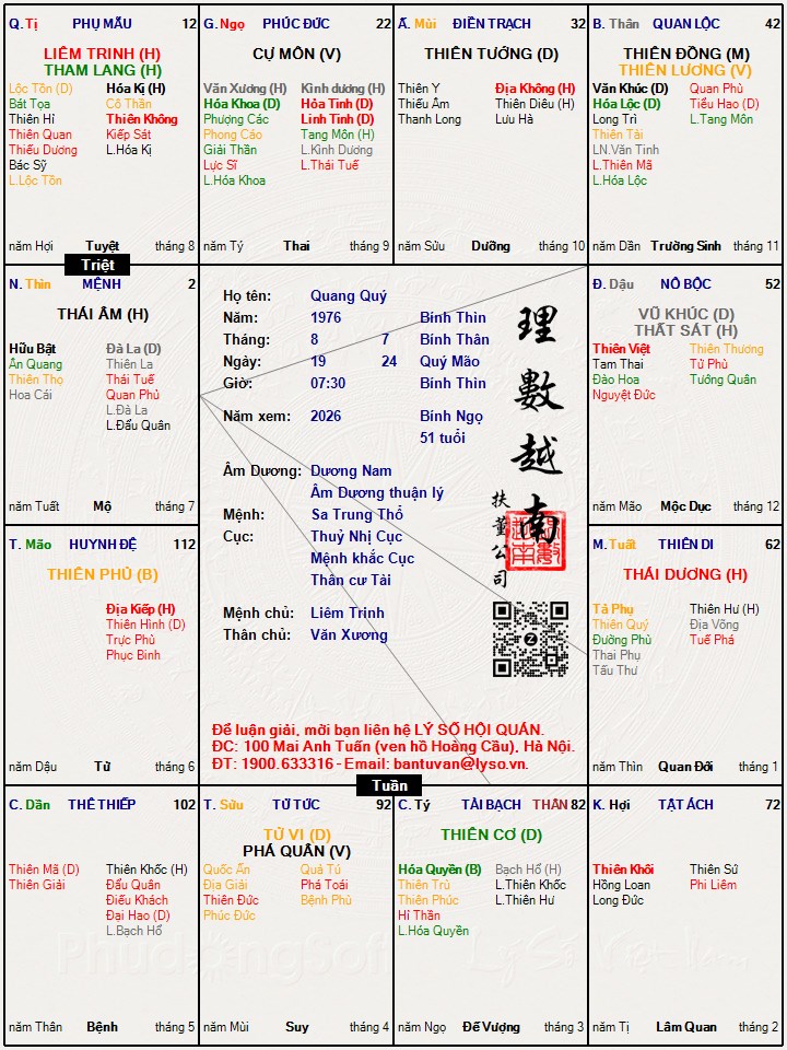 Các luận giải : Lá số tử vi - Quang Quý