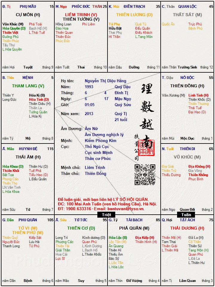 Các luận giải : Lá số tử vi - Nguyễn Thị Diệu Hằng