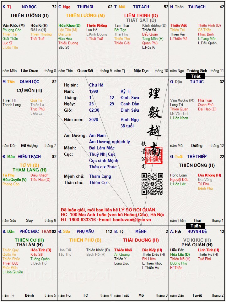 Lá số tử vi : Chu Hà