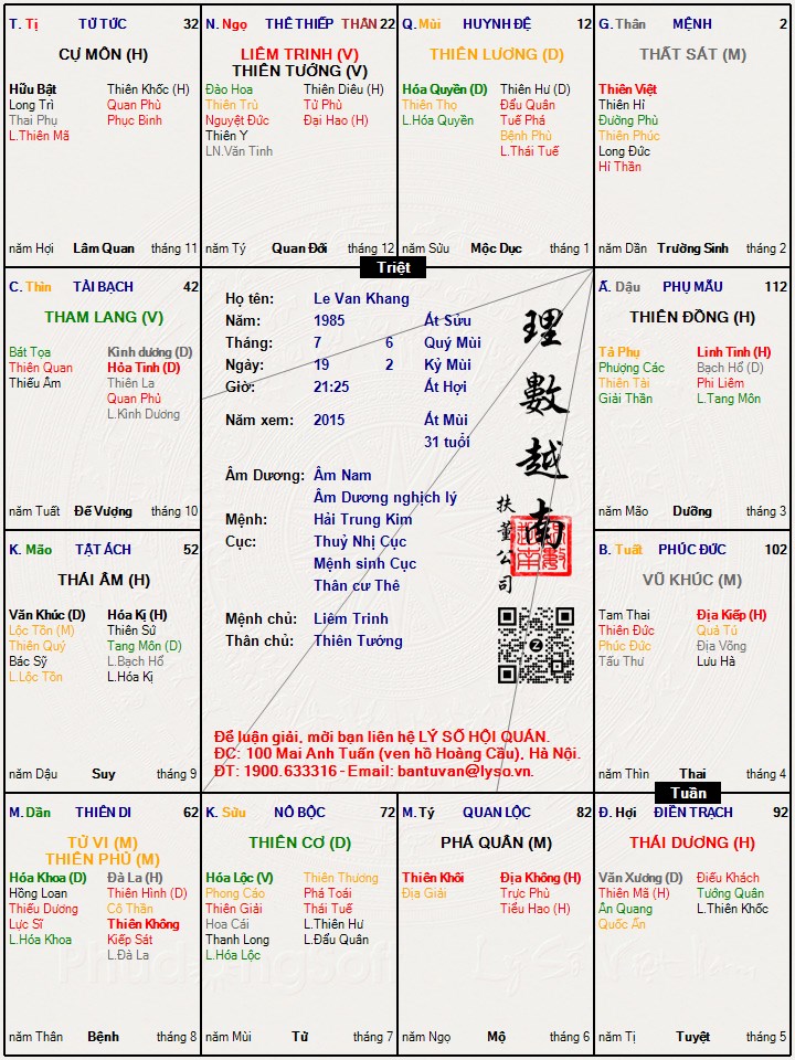 Các luận giải : Lá số tử vi - Le Van Khang