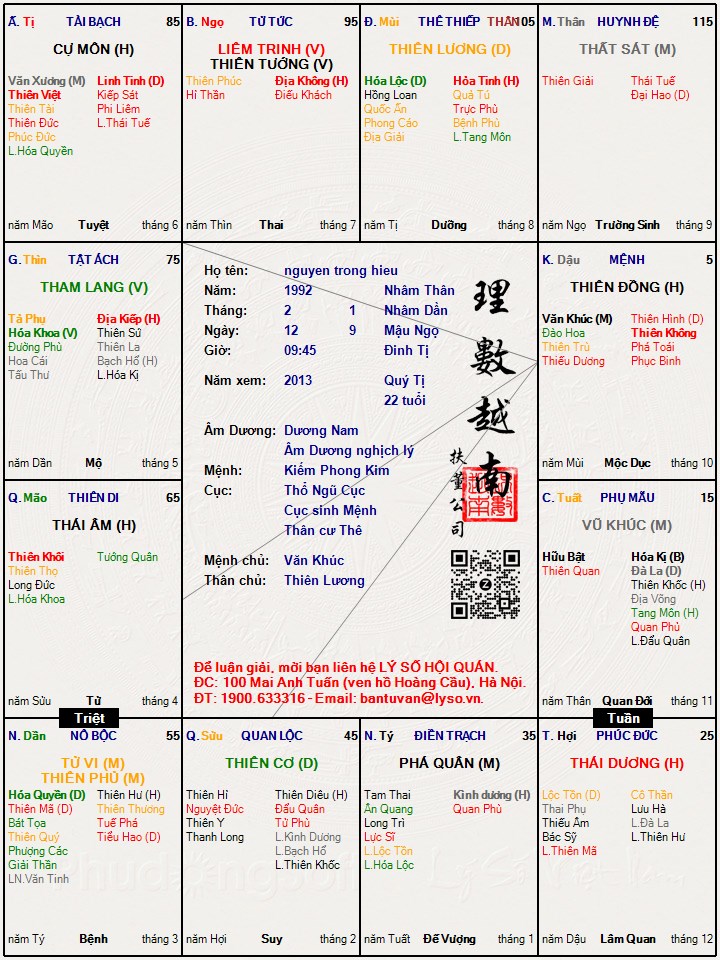 Các luận giải : Lá số tử vi - nguyen trong hieu