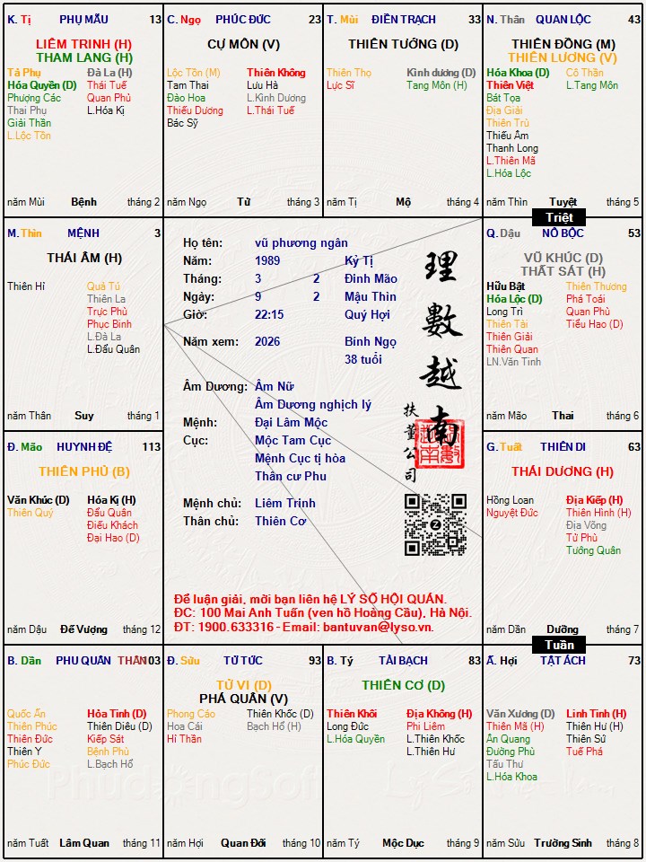 Các luận giải : Lá số tử vi - vũ phương ngân