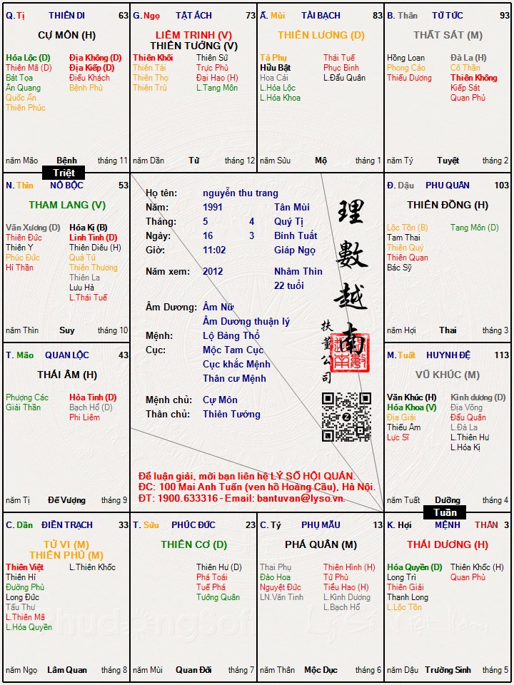Các luận giải : Lá số tử vi - nguyễn thu trang