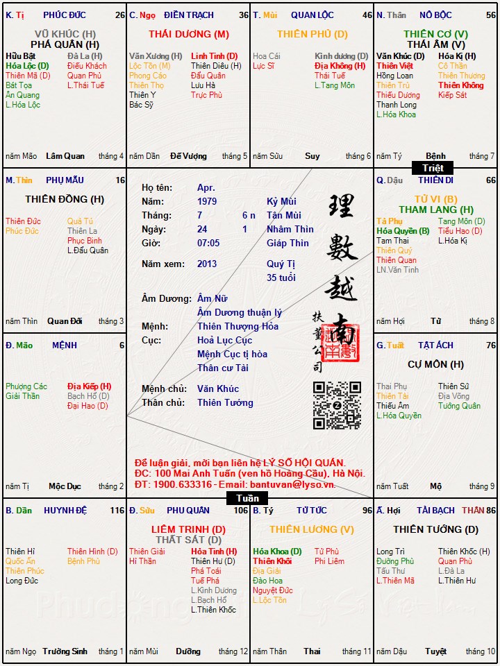 Lá số tử vi : Apr.