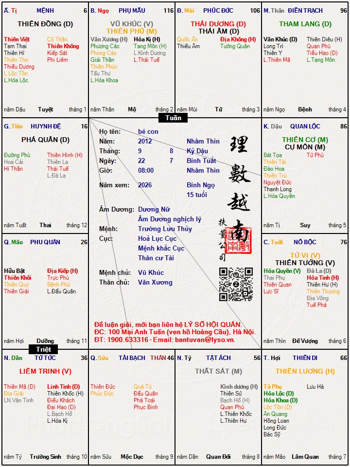 Các luận giải : Lá số tử vi - bé con