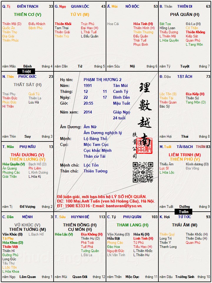 Các luận giải : Lá số tử vi - PHẠM THỊ HƯƠNG 2