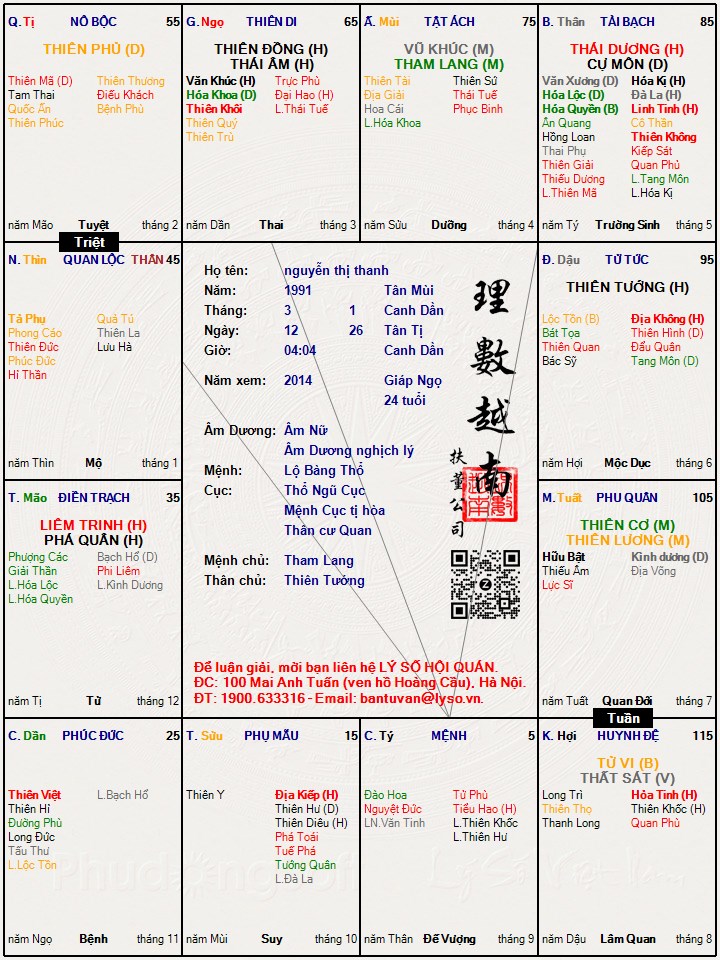 Lá số tử vi : nguyễn thị thanh