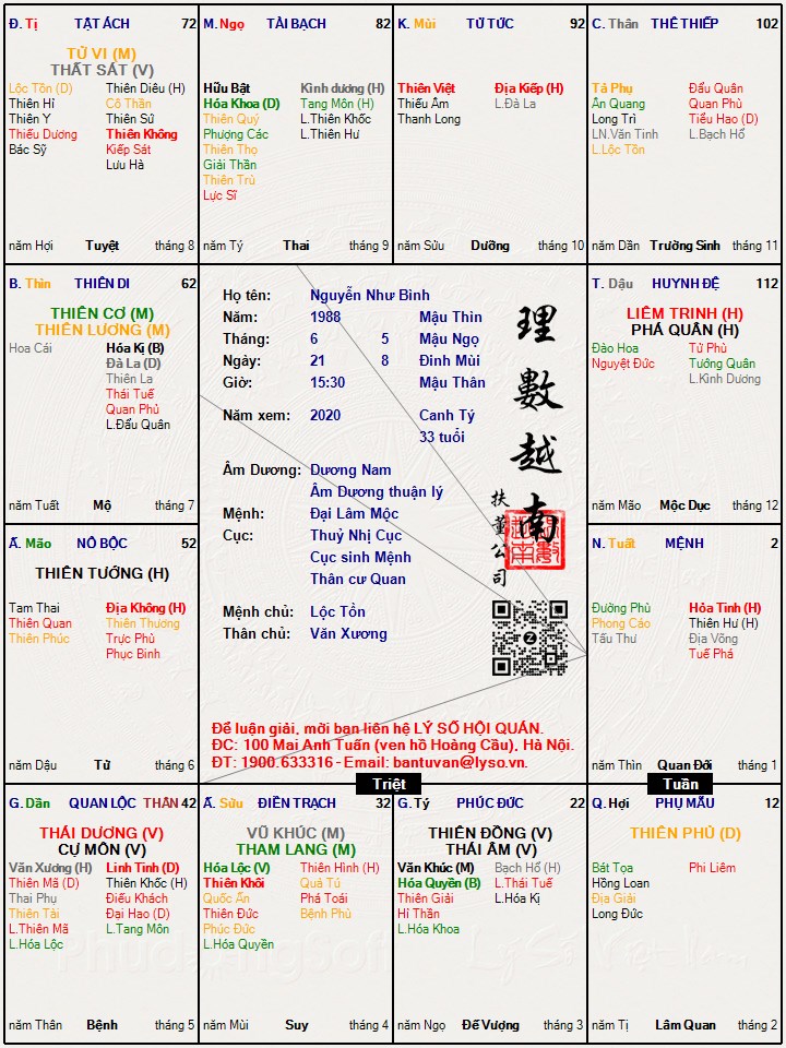Lá số tử vi : Nguyễn Như Bình