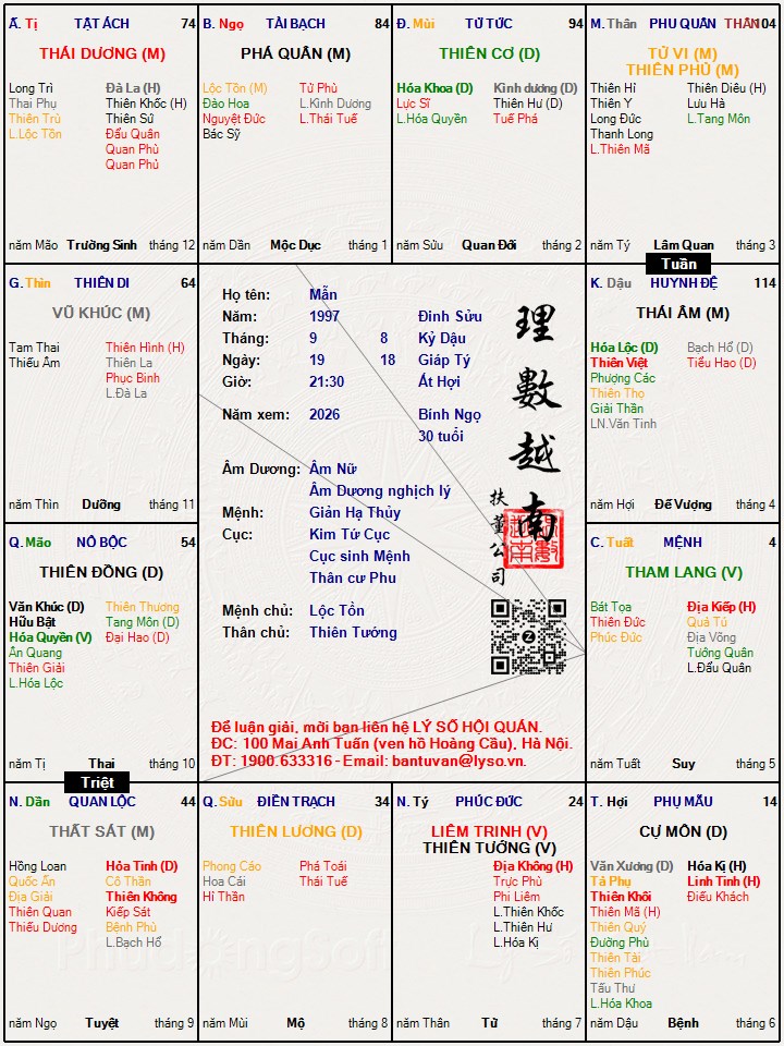 Lá số tử vi : Mẫn