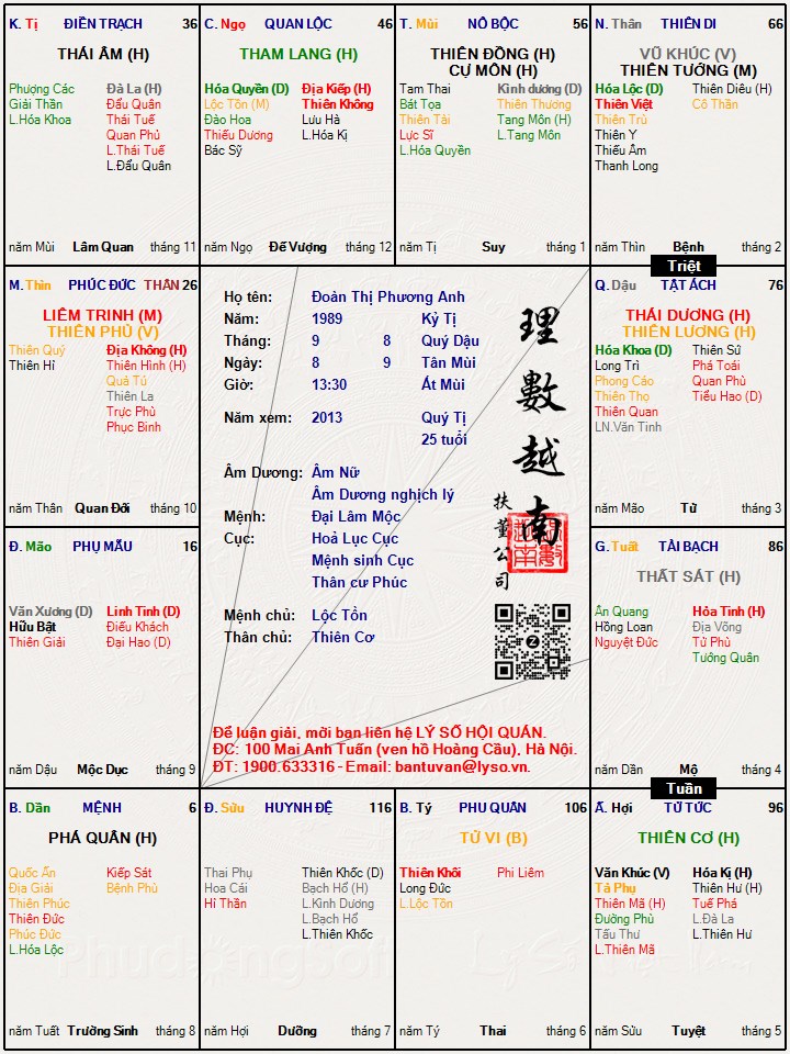 Các luận giải : Lá số tử vi - Đoàn Thị Phương Anh