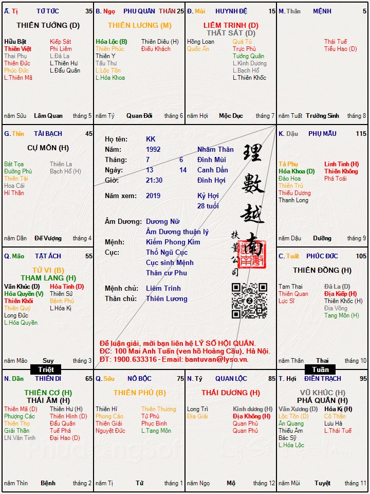 Lá số tử vi : KK