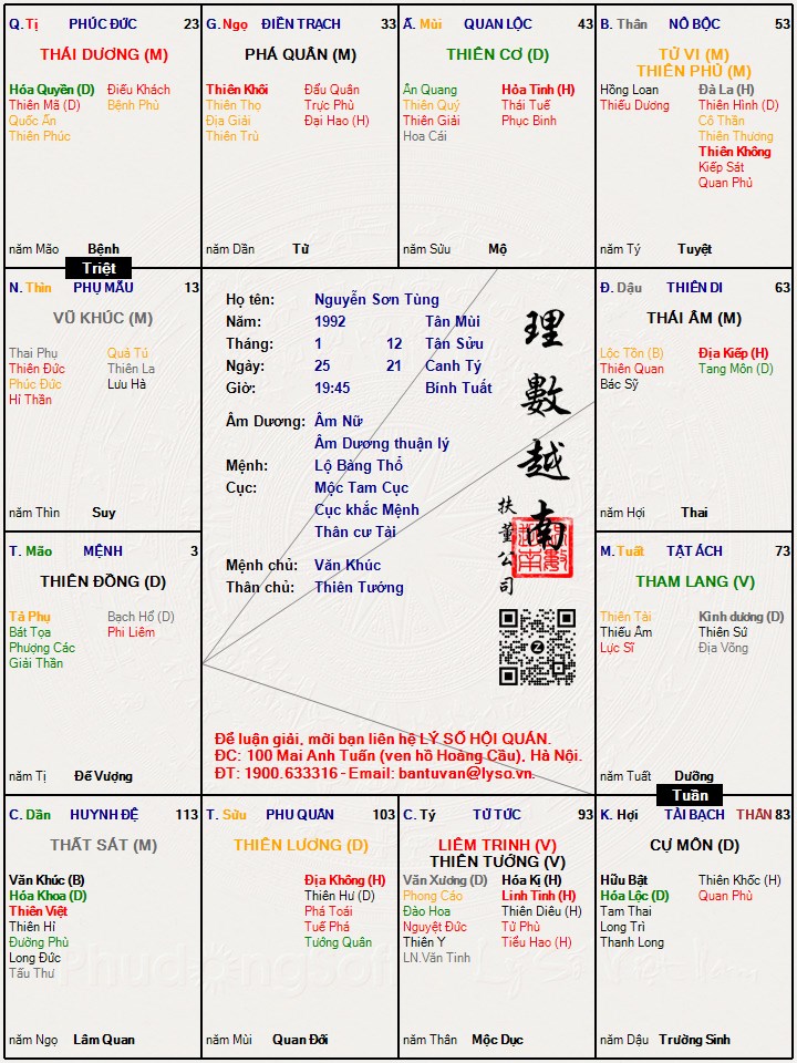 Các luận giải : Lá số tử vi - Nguyễn Sơn Tùng