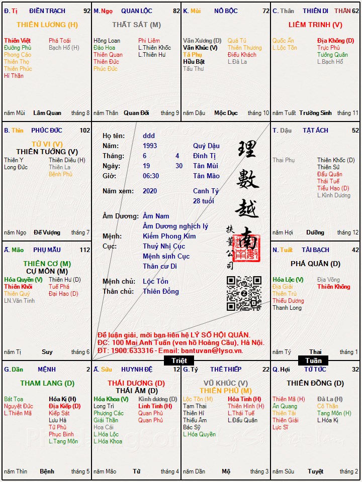 Lá số tử vi : ddd