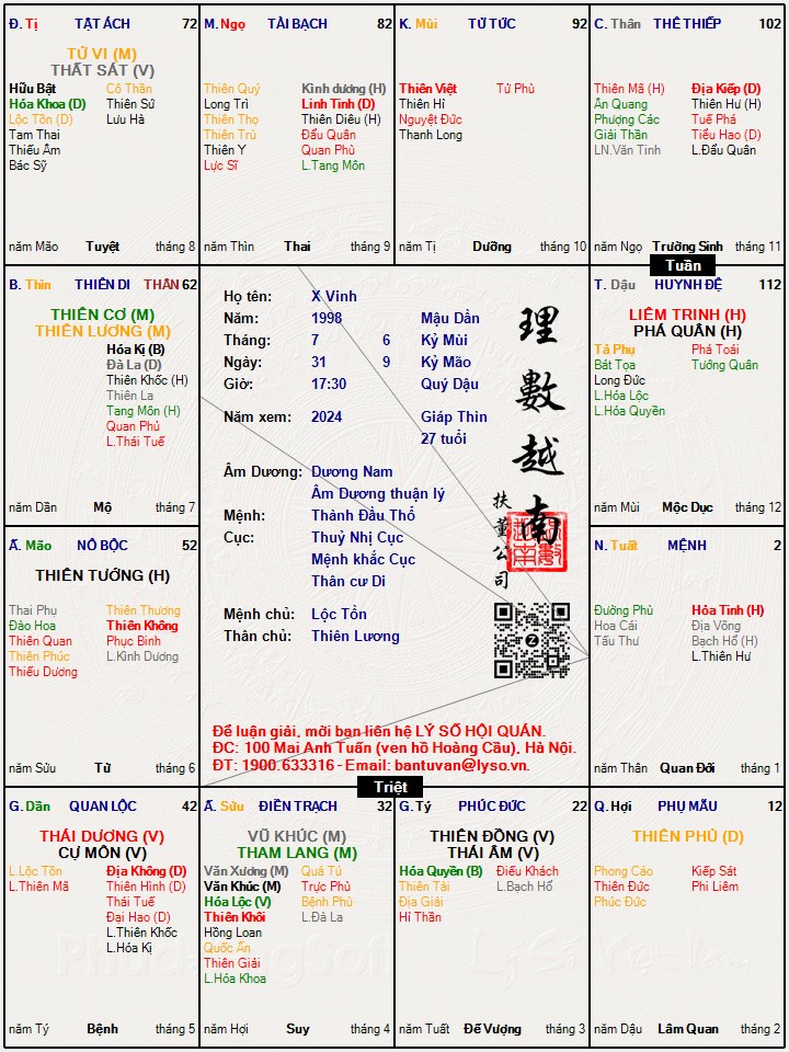 Lá số tử vi : X Vinh