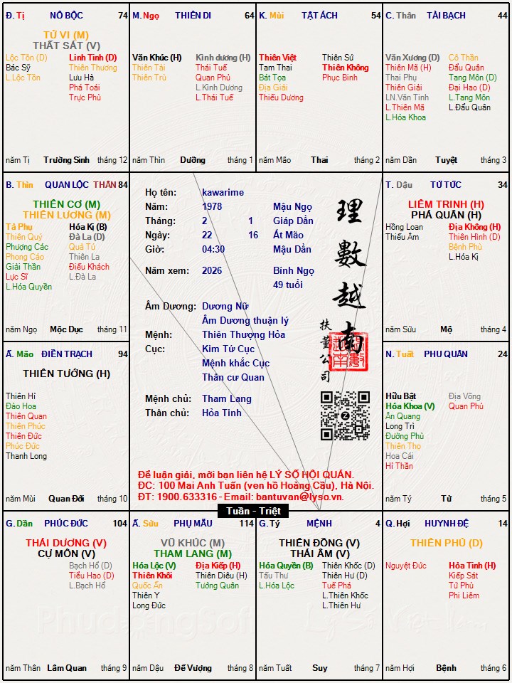 Các luận giải : Lá số tử vi - kawarime