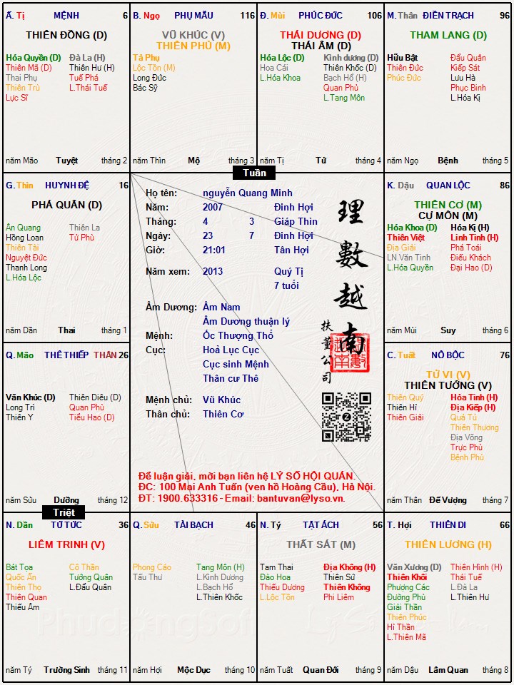 Các luận giải : Lá số tử vi - nguyễn Quang Minh