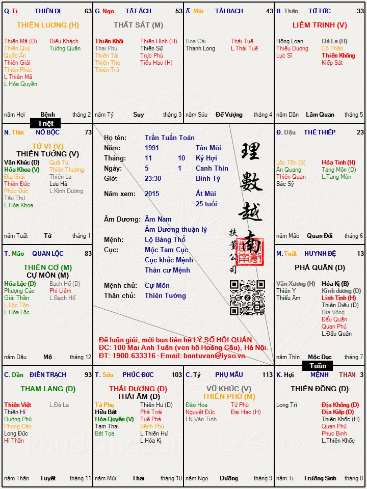 Lá số tử vi : Trần Tuấn Toàn