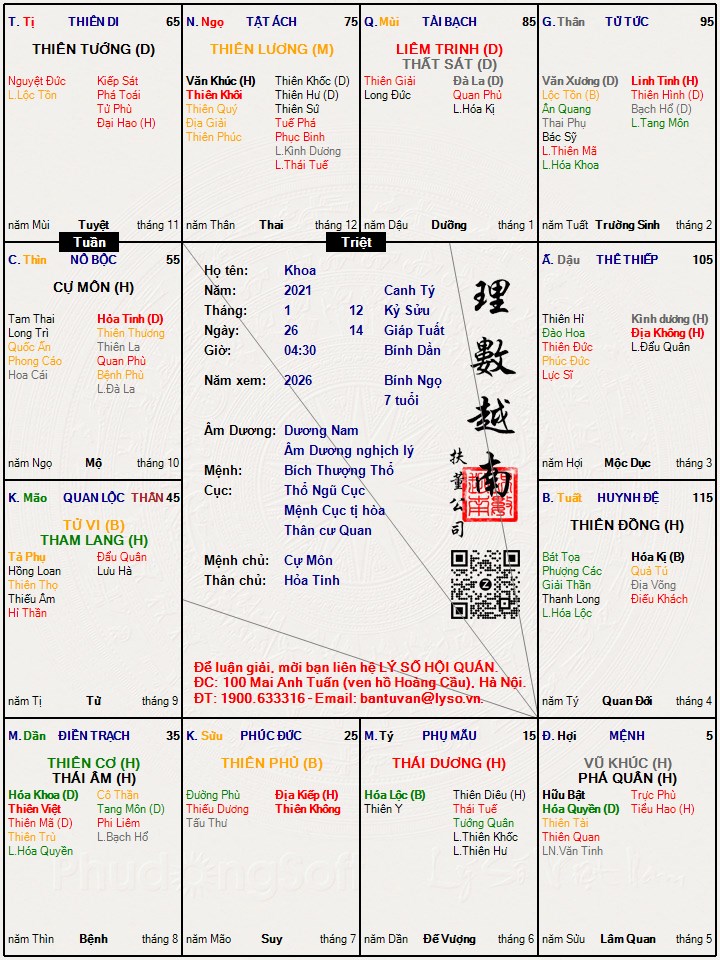 Lá số tử vi : Khoa