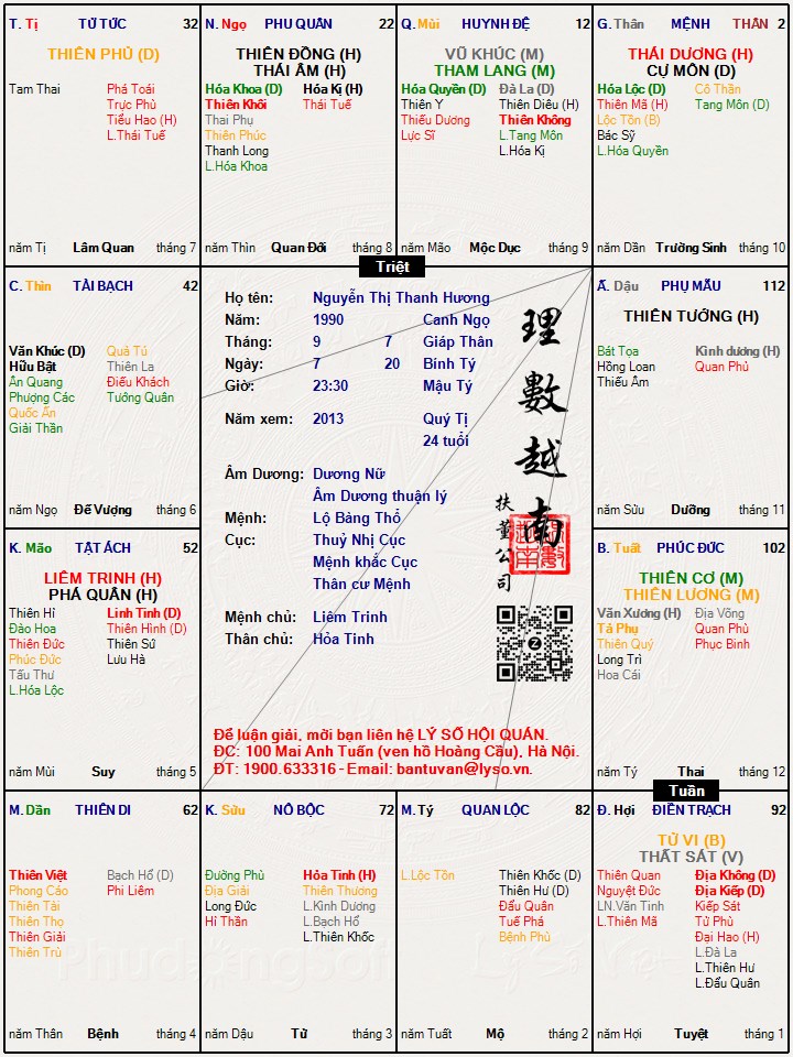 Các luận giải : Lá số tử vi - Nguyễn Thị Thanh Hương