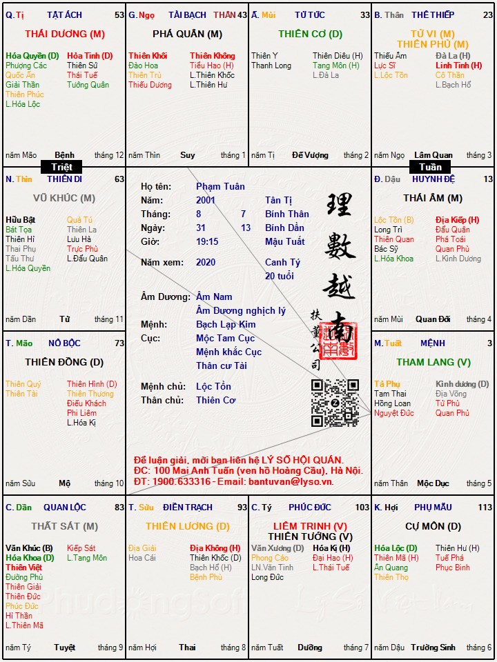 Lá số tử vi : Phạm Tuân