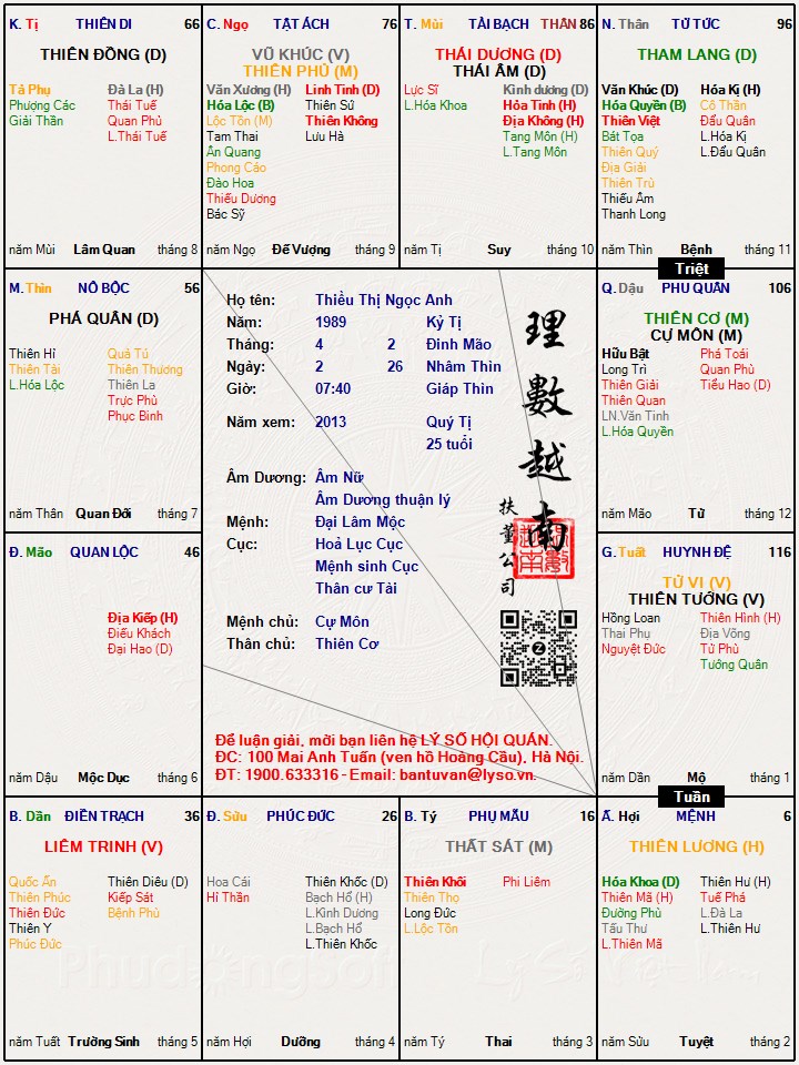Các luận giải : Lá số tử vi - Thiều Thị Ngọc Anh