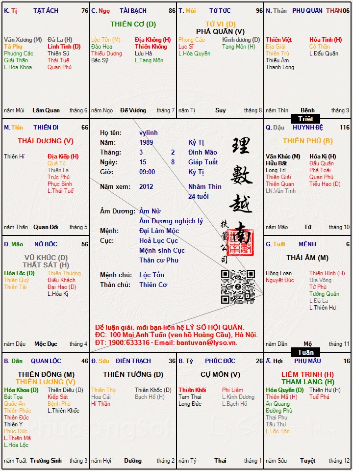 Lá số tử vi : vylinh