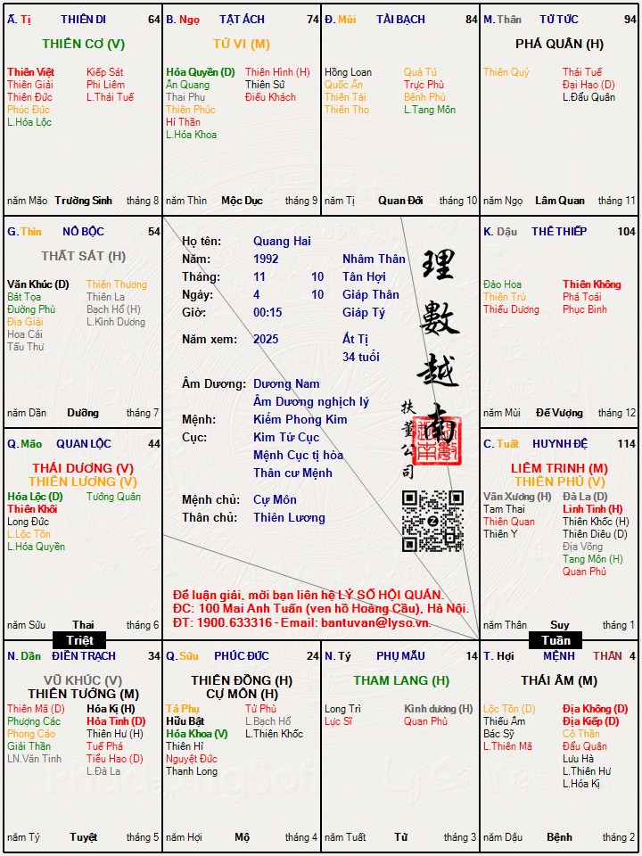 Lá số tử vi : Quang Hai