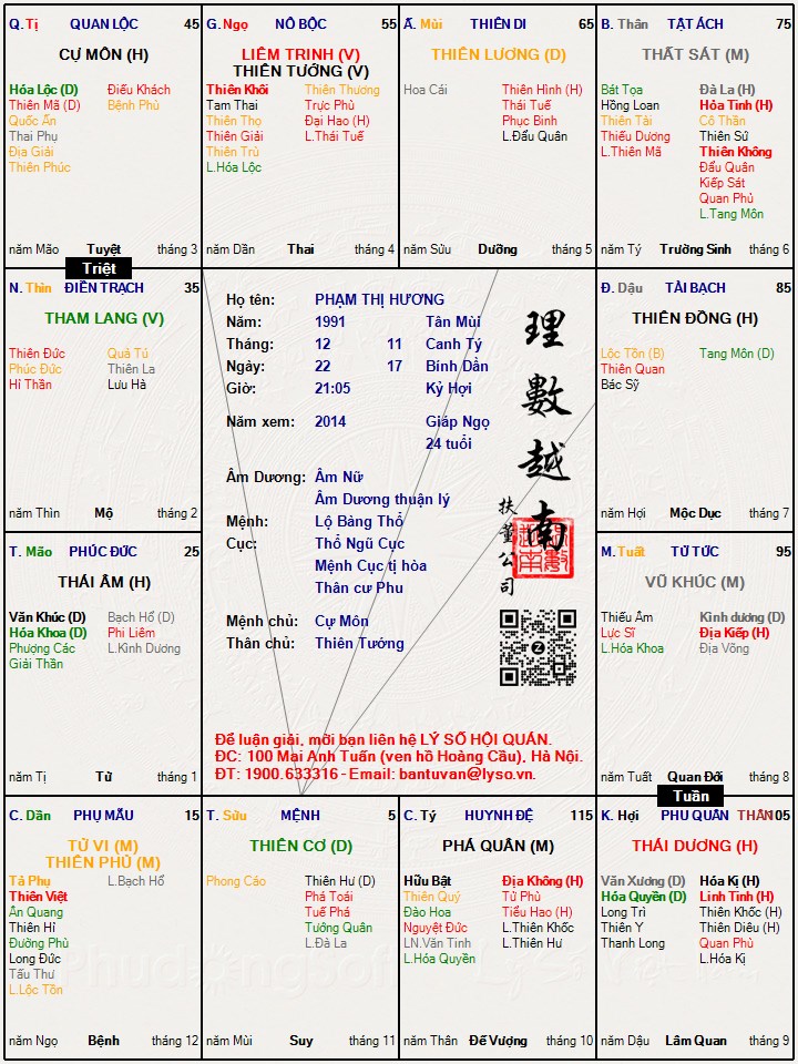Lá số tử vi : PHẠM THỊ HƯƠNG