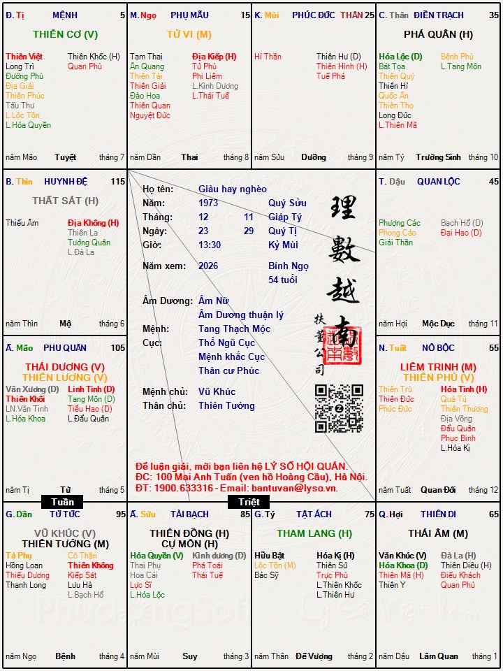 Các luận giải : Lá số tử vi - Giàu hay nghèo