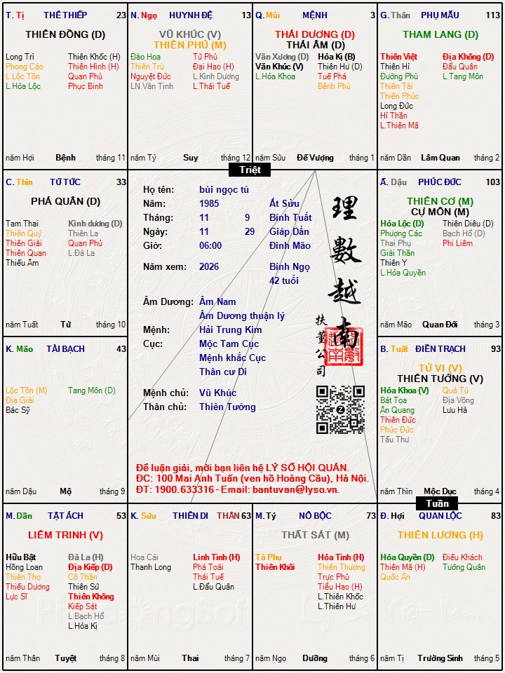 Các luận giải : Lá số tử vi - bùi ngọc tú