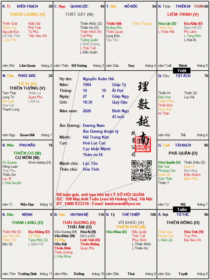 Lá số tử vi : Nguyễn Xuân Hải
