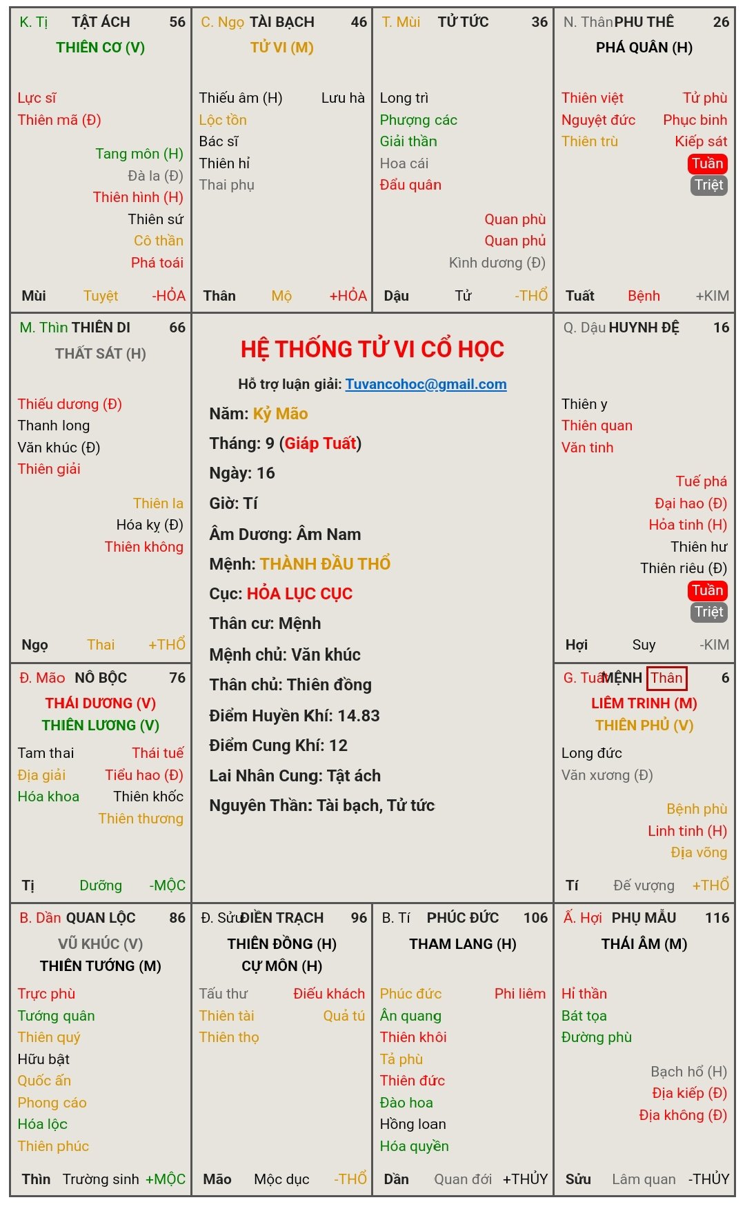 begauhn đã viết: 17:13, 08/09/23Cho mìn hỏi đây có phải lá số Âm Long Trực đi qua Tang Hư Khách hay không ạ?tqmoon đã viết: 14:35, 08/09/23Em thấy có bộ sao này thường không được người khác công nhận khả năng của mình ýbegauhn đã viết: 10:45, 07/09/23 Âm Long Trực