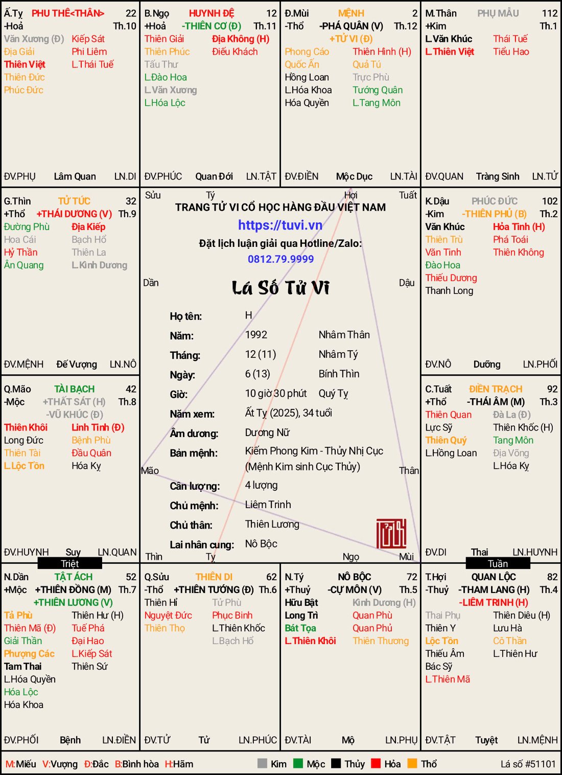 Em theo dõi bài viết cũng đã lâu rồi. Đến bây giờ em mới mạnh dạn gửi lstv của mình mong được hữu duyên về vận hạn. Lá số của em cũng ôm vòng Âm long trực, do em có dự định kinh doanh và sắp tới vào đại vận Thiên không nên em chút lo lắng. Mong được được hữu duyên! Em cảm ơn!