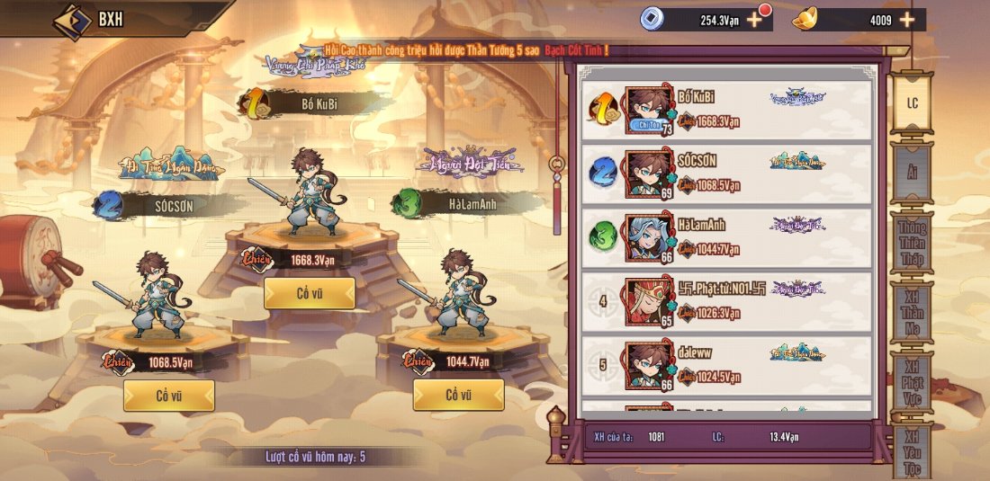 E định nghỉ diễn đàn nhưng hôm nay vào game tây du phục ma xem tình hình thấy cái bảng xếp hạng sever thấy top1 tên lá Bố KuBi mà con e tên ở nhà cũng là Ku Bi nên vào khoe với a.