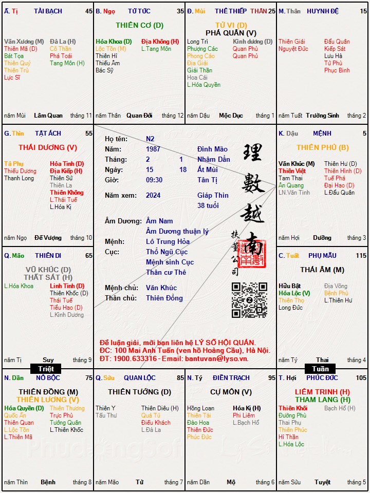 Theo lá số thì có thể cho là Đại Vận có Lộc Tồn, Tiểu Vận có Lưu Lộc Tồn!SeTM1987 đã viết: 21:53, 14/08/24 E vừa được cho 1 khoản tiền lớn cỡ 1 căn chung cư 2 phòng ngủ, xin các cao nhân lý giải giúp em nguyên nhân ạ