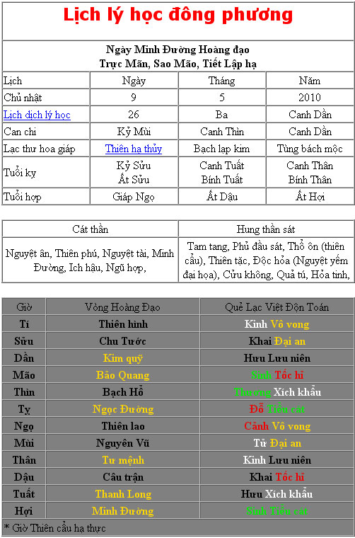 Đổng Lâm đã viết:Ngày 09/05/2010 tức ngày 26 tháng 3 năm canh dần là ngày Kỷ Mùi, sao Mão, trực Mãn