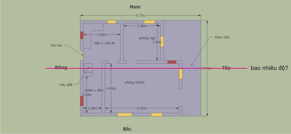 em phải đo xem hướng nhà là bao nhiêu độ? xây năm nào?