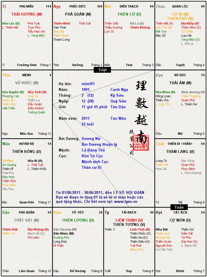 gamdo đã viết:bichvan86 đã viết:cháu là nữ sinh giờ sửu ngày 25/9/1986 dương lịch tại Sài Gòn.