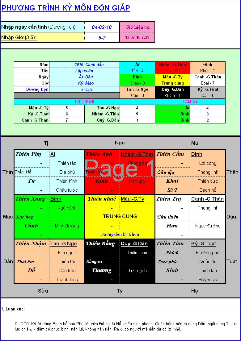 Laido đã sửa bàn Kỳ môn độn giáp và post lại ở trên, Bác xem có rõ không ạ? Bác chỉ cần kích đúp vào là nó hiện ra Bảng to rõ ràng Bác ạ.