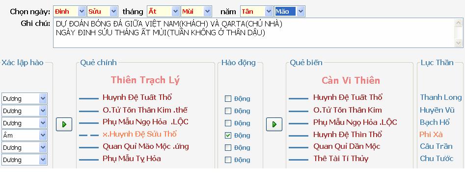 Tôi gieo quẻ bằng 3 đồng tiền cổ.tieudao123 đã viết:Trận đấu này diễn ra lúc mấy giờ vậy, em tìm không ra.