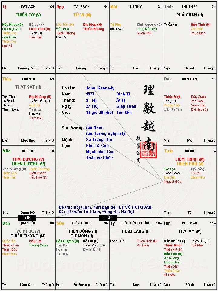 một ví dụ về thiên tướng đụng triệt . bạn này chưa đến nỗi mất đầu chỉhanhtran đã viết:thiên tướng gặp tuần thì coi như long đong cả đời còn j nữa, đúng ko nhỉ?