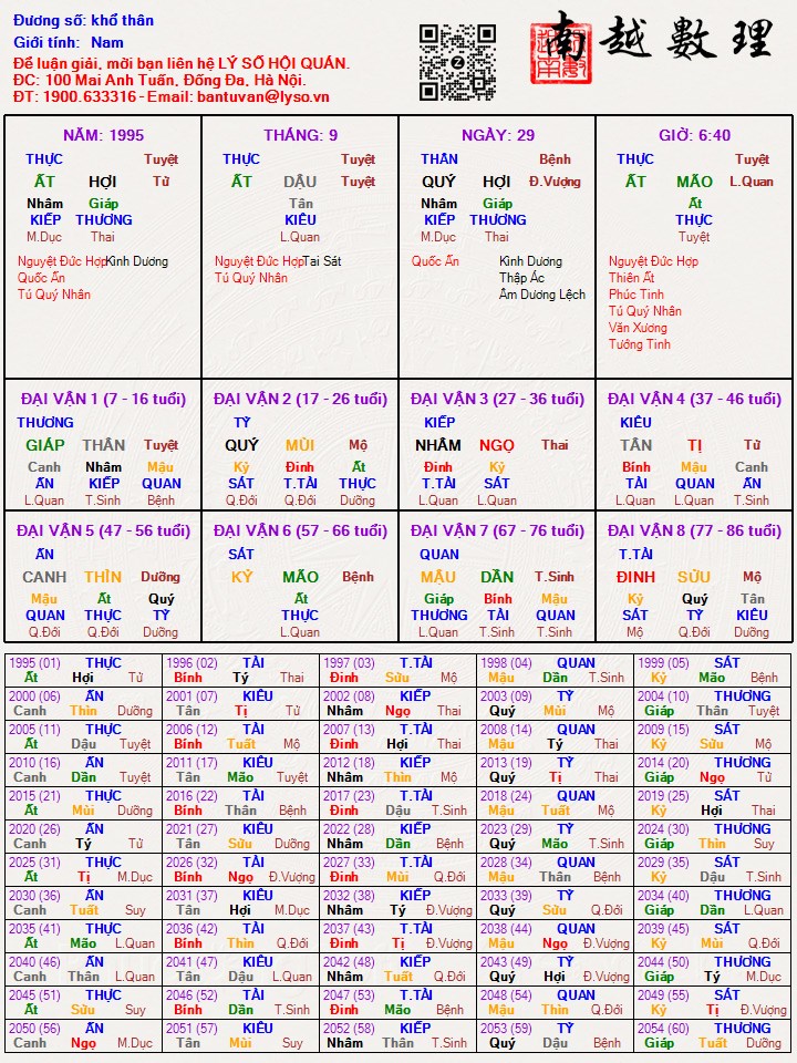 Chào bạn, vì không có thời gian tư vấn cụ thể về từng năm một, xin điểm qua một số nét cơ bản đi xuyên suốt số mệnh của bạn nhé.